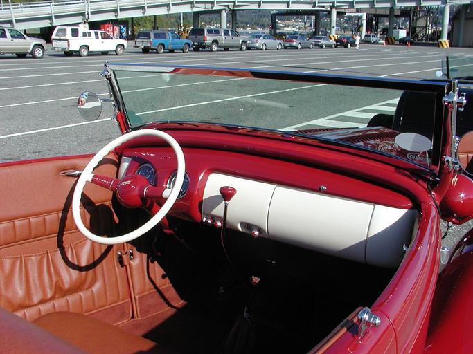 Keywords: old timer automobile oldsmobile car vehicle red transportation dashboard interior