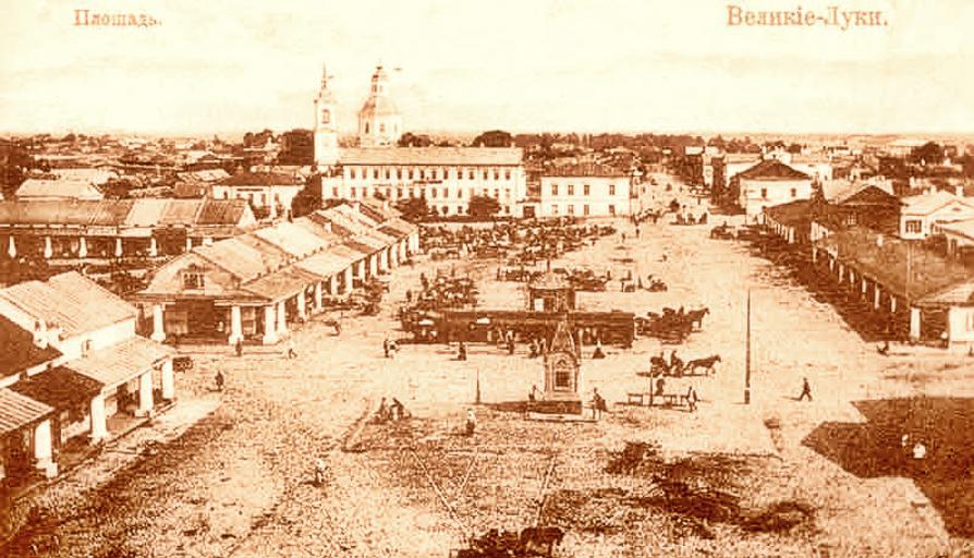 | Keywords: Old velikiye luki 3.jpg ru Рыночная или То говая площадь ныне пл Ленина ; сп ава - ог ада и главный вход женского Вознесенского монасты я; на заднем плане - двухэтажное здание п инадлежавшее почтовому ведомству т ехэтажное здание ок ужного суда и одноэтажное здание казначейства; над ними возвышается Богоявленский собо ; в цент е - часовня Александ а евского за ней - би жа извозчиков А хив Великолукского К аеведческого музея Author ачало XX в е позднее 1917 года PD-RusEmpire Postcards of Velikiye Luki PD-old |