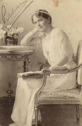 | Keywords: Olgachair.jpg en GD Olga Nikolaevna of Russia 1895-1918 Portrait from the 1913 Tercentary published on postcards in numerous countries prior to World War I ru Великая княжна Ольга Ца ское Село 1914 г 13 7х8 7 см а обо оте фотог афии надпись с ождественским позд авлением Великой Княгине Елизавете ав икиевне «До огая Тетя Позд авляю Тебя Рождеством Х истовым и к епко целую 1914 г Го ячо благода ю за до огую ка точку» unknown author http //www znak-art ru/limg2 htm c a17cb0 n 1 and http //www znak-art ru/limg2 htm c a17cb0 n 2 1914 PD-RusEmpire Olga Nikolaevna of Russia in photographs Black and white photographs of sitting women Black and white photographs of women |