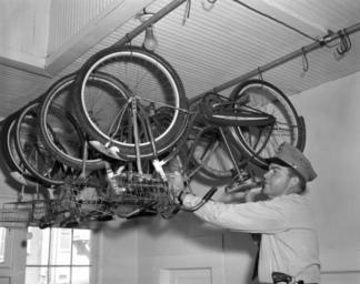 | Keywords: florida tallahassee police officers policeofficers bicycles vintage blackandwhite monochrome black and white Persistent URL: floridamemory.com/items/show/261369 Local call number: TD00442 Title: Police officer hanging a bike for storage - Tallahassee Date: December 6, 1957 Physical descrip: 1 photonegative - b&w - 4 x 5 in. Series Title: Tallahassee Democrat Collection Repository: State Library and Archives of Florida 500 S. Bronough St., Tallahassee, FL, 32399-0250 USA, Contact: 850.245.6700, Archives@dos.myflorida.com Persistent URL: floridamemory.com/items/show/261369 Local call number: TD00442 Title: Police officer hanging a bike for storage - Tallahassee Date: December 6, 1957 Physical descrip: 1 photonegative - b&w - 4 x 5 in. Series Title: Tallahassee Democrat Collection Repository: State Library and Archives of Florida 500 S. Bronough St., Tallahassee, FL, 32399-0250 USA, Contact: 850.245.6700, Archives@dos.myflorida.com |