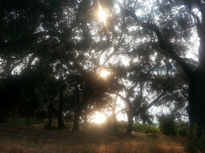 Keywords: olive grove sun olive trees sunlight lichtspiel