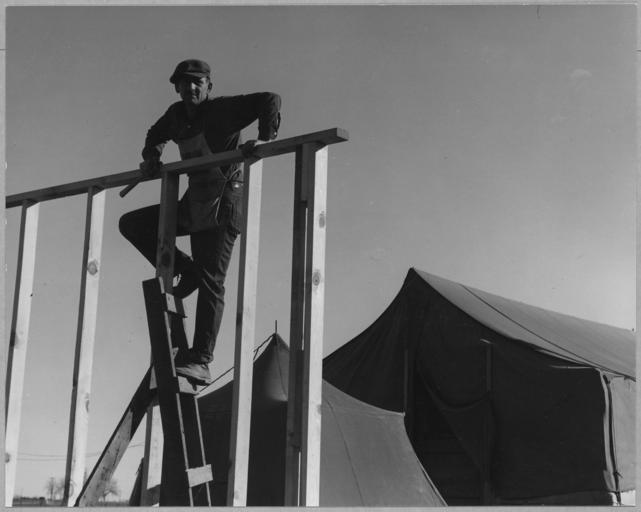 | Keywords: Olivehurst, Yuba County, California. Since September 1939 a family of four have lived in the tent. F . . . - NARA - 521815.jpg Scope and content Full caption reads as follows Olivehurst Yuba County California Since September 1939 a family of four have lived in the tent Father shown building new house He was once a machinist now an agricultural laborer General notes 521815 Local identifier 83-G-41573 Department of Agriculture Bureau of Agricultural Economics Division of Economic Information ca 1922 - ca 1953 NARA-Author Lange Dorothea 1895-1965 Photographer 1372774 <br /> Still Picture Records Section Special Media Archives Services Division NWCS-S National Archives at College Park 8601 Adelphi Road College Park MD 20740-6001 1940-02-21 Record group Record Group 83 Records of the Bureau of Agricultural Economics 1876 - 1959 Record group ARC 412 Photographic Prints Documenting Programs and Activities of the Bureau of Agricultural Economics and Predecessor Agencies compiled ca 1922 - ca 1947 documenting the period ca 1911 - ca 1947 Series ARC 521048 File unit File unit ARC Variant control numbers NAIL Control Number NWDNS-83-G-41573 Other versions <gallery> File Olivehurst _Yuba_County _California _Since_September_1939_a_family_of_four_have_lived_in_the_tent _F_ _ _ _-_NARA_-_521815 tif tif File Olivehurst _Yuba_County _California _Since_September_1939_a_family_of_four_have_lived_in_the_tent _F_ _ _ _-_NARA_-_521815 jpg jpg </gallery> NARA-cooperation PD-USGov Dorothea Lange History of Yuba County California |