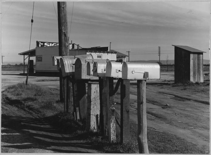 | Keywords: Oliverhurst, Yuba County, California. Mailboxes at head of Second Avenue and Olivehurst Street. A ma . . . - NARA - 521576.jpg Scope and content Full caption reads as follows Oliverhurst Yuba County California Mailboxes at head of Second Avenue and Olivehurst Street A mailbox in place of a general delivery address is a symbol of permanence to erstwhile migrants General notes 521576 Local identifier 83-G-41335 Department of Agriculture Bureau of Agricultural Economics Division of Economic Information ca 1922 - ca 1953 NARA-Author Lange Dorothea 1895-1965 Photographer 1372774 <br /> Still Picture Records Section Special Media Archives Services Division NWCS-S National Archives at College Park 8601 Adelphi Road College Park MD 20740-6001 1940-02-20 Record group Record Group 83 Records of the Bureau of Agricultural Economics 1876 - 1959 Record group ARC 412 Photographic Prints Documenting Programs and Activities of the Bureau of Agricultural Economics and Predecessor Agencies compiled ca 1922 - ca 1947 documenting the period ca 1911 - ca 1947 Series ARC 521048 File unit File unit ARC Variant control numbers NAIL Control Number NWDNS-83-G-41335 Other versions <gallery> File Oliverhurst _Yuba_County _California _Mailboxes_at_head_of_Second_Avenue_and_Olivehurst_Street _A_ma_ _ _ _-_NARA_-_521576 tif tif File Oliverhurst _Yuba_County _California _Mailboxes_at_head_of_Second_Avenue_and_Olivehurst_Street _A_ma_ _ _ _-_NARA_-_521576 jpg jpg </gallery> NARA-cooperation PD-USGov Dorothea Lange History of Yuba County California |