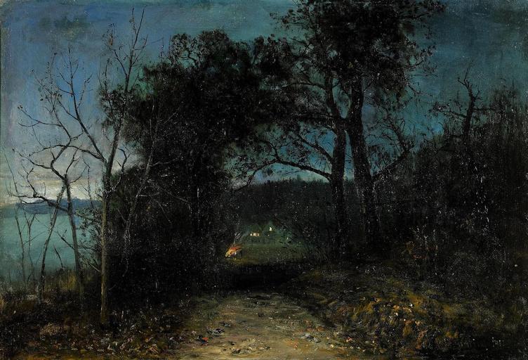 Keywords: Olof Hermelin - Skymning Vid Långängen - Stocksund.jpg Artwork creator Olof Hermelin 1911 oil canvas cm 62 5 91 accession number object history credit line O Hermelin 1911 ~ lower right signature / date http //www arcadja com/auctions/de/private/hermelin_olof/kunstwerken/13328/0/ Stockholms Auktionsverket 2006 11 29 lot 2085 via ARCADJA auction results PD-old-auto-1923 1913 Olof Hermelin 1910s landscape paintings Landscape paintings of Sweden Night in art