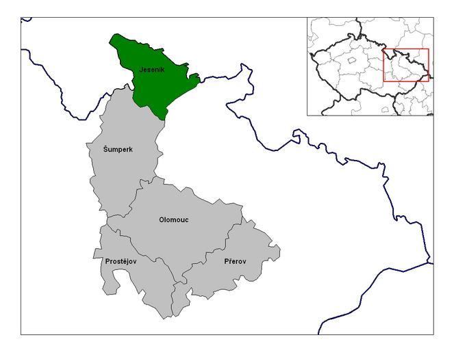 | Keywords: Olomoucký kraj - Okres Jeseník (Silesia).png Jeseník District in Olomouc Region of the Czech Republic This is part of Silesia Okres Jeseník v Olomouckém kraji v České republice Historicky jde o součást Slezska Powiat Jeseník znajdujący się w kraju ołomunieckim w Czechach Jest to część Śląska Okres Jeseník befindlich in Olomoucký kraj in Tschechien Das ist ein Teil Schlesiens own 02 01 2007 original image 14 04 2007 this image LUCPOL taken from Image Olomouc districts png by Rarelibra 50px Maps of Jeseník District M2 Maps of the Olomouc Region |