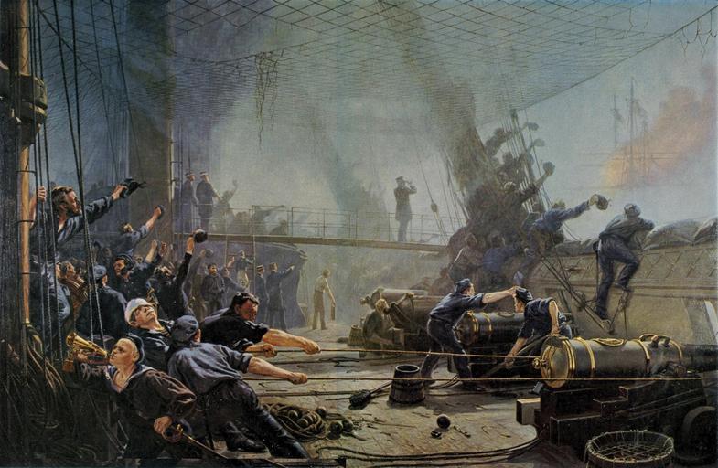 MAKE A MEME View Large Image Ombord på frigatten Niels Juel.jpg Artwork Ombord på frigatten Niels Juel under slaget ved Helgoland 9 maj 1864 Creator Christian Mølsted 1897-1898 Oil Portrætsamlingen på Frederiksborg Slot Own photographic reproduction of an expired ...