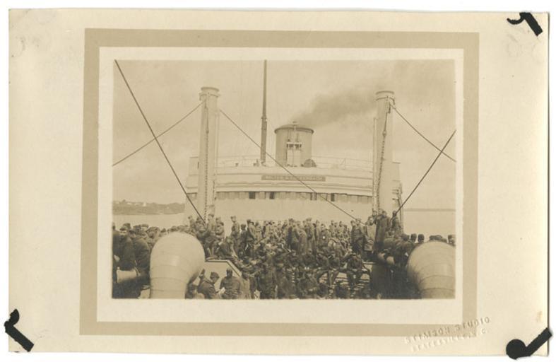 | Keywords: armistice day armisticeday library of virginia libraryofvirginia world war i worldwari military hospitals militaryhospitals u.s. army usarmy toul, france toulfrance on the boat ontheboat coming home cominghome benjamin alston stimson benjaminalstonstimson 1918 1919 uss walter a. luckenbach usswalteraluckenbach medic soldier great war greatwar transport ship steam ship steamship luckenbach steamship company luckenbachsteamshipcompany seattle construction and dry dock company seattleconstructionanddrydockcompany id-3171 id3171 smoke stimson studio stimsonstudio steam ships steamships base hospital #45 basehospital45 u.s. army base hospital no. 45 usarmybasehospitalno45 steamer cargo ship cargoship ss walter a. luckenbach sswalteraluckenbach walter a. luckenbach walteraluckenbach luckenbach seattle contruction and drydock company seattlecontructionanddrydockcompany seattle dry dock & shipbuilding company seattledrydockshipbuildingcompany united states navy unitedstatesnavy us navy usnavy usn uss walter a. luckenbach (id-3171) usswalteraluckenbachid3171 troopship troop transport trooptransport new orleans coal and bisso towboat company neworleanscoalandbissotowboatcompany ss a.l. bisso ssalbisso a.l. bisso albisso ss mardin ssmardin mardin marsa ithalat-ithracat marsaithalatithracat Title: On the boat, coming home  Creator:  Stimson, Benjamin Alston  Date: 1918  Notes: Part of an album containing 134 photographs and 47 postcards relating to U.S. Army Base Hospital No. 45 (Medical College of Virginia unit), Toul, France, in World War I.  Call No: P & P C1:81  Rights Info:   No known restrictions on publication.  Repository:   Library of Virginia, Special Collections, Prints and Photographs, 800 E. Broad St., Richmond, VA, 23219, USA. Contact: 804-692-3703. Title: On the boat, coming home  Creator:  Stimson, Benjamin Alston  Date: 1918  Notes: Part of an album containing 134 photographs and 47 postcards relating to U.S. Army Base Hospital No. 45 (Medical College of Virginia unit), Toul, France, in World War I.  Call No: P & P C1:81  Rights Info:   No known restrictions on publication.  Repository:   Library of Virginia, Special Collections, Prints and Photographs, 800 E. Broad St., Richmond, VA, 23219, USA. Contact: 804-692-3703. |