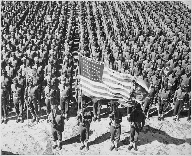 | Keywords: "On parade, the 41st Engineers at Ft. Bragg, NC in color guard ceremony." - NARA - 535822.tif Local identifier 208-NP-4HHH-2 Office for Emergency Management Office of War Information Domestic Operations Branch News Bureau 06/13/1942 - 09/15/1945 Still Picture Records Section Special Media Archives Services Division NWCS-S National Archives at College Park 8601 Adelphi Road College Park MD 20740-6001 Record group Record Group 208 Records of the Office of War Information 1926 - 1951 Record group ARC 535 Negro Activities in Industry Government and the Armed Forces compiled 1941 - 1945 Series ARC 535799 Variant control numbers NAIL Control Number NWDNS-208-NP-4HHH-2<br /> Select List Identifier AFRO/AM LIST 1 General notes Scope and content File unit File unit ARC yes <gallery> File On_parade _the_41st_Engineers_at_Ft _Bragg _NC_in_color_guard_ceremony _-_NARA_-_535822 tif tif File On_parade _the_41st_Engineers_at_Ft _Bragg _NC_in_color_guard_ceremony _-_NARA_-_535822 jpg jpg </gallery> NARA-cooperation PD-USGov African American military history Engineers flags of the United States Army Fort Bragg Group photographs of military people Military people of the United States Military people with a flag of the United States NARA TIF images with categorized JPGs |