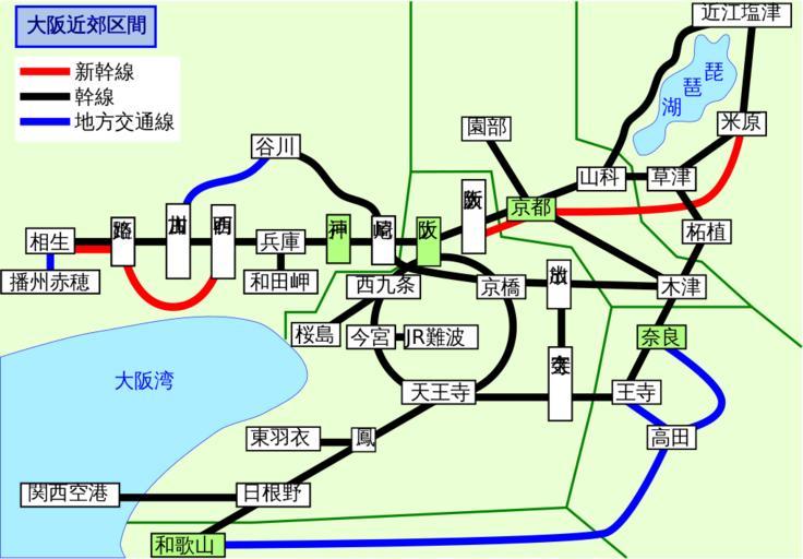Keywords: Oosaka jr kinoko area.svg ja JR西日 の大阪近郊区間 Own 鉄之介 2010-03-05 Created with Inkscape Railway lines of JR West Railway maps of JR West Diagrams in Japanese