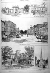 Keywords: blackandwhite monochrome photo border outdoor black and white Appeared in May 17, 1884, issue of Harper's Weekly. Original print contains the following sketches: Graded School Building (5 13/16 x 2 9/16); Lord Cornwallis's Head-Quarters (3 7/16 x 3), showing building identified as Southern Cigar Factory; Tryon Street, Looking Southwest, (9 1/4 x 5), showing busy street scene with wagons, people, storefronts, and businesses; Residence of Colonel William Johnston, Mayor of Charlotte (6 7/8 x 5 15/16), showing view of house from street with onlookers posing on sidewalk in front; and Presbyterian Church (2 11/16 x 4 3/4). See article "The Industrial South" p. 255 for text that accompanied print. On reverse of the above print is another original print entitled The Turpentine Industry--North Carolina (see OP-8). From Original Prints, Audio Visual Materials, Special Collections, State Archives of North Carolina. Appeared in May 17, 1884, issue of Harper's Weekly. Original print contains the following sketches: Graded School Building (5 13/16 x 2 9/16); Lord Cornwallis's Head-Quarters (3 7/16 x 3), showing building identified as Southern Cigar Factory; Tryon Street, Looking Southwest, (9 1/4 x 5), showing busy street scene with wagons, people, storefronts, and businesses; Residence of Colonel William Johnston, Mayor of Charlotte (6 7/8 x 5 15/16), showing view of house from street with onlookers posing on sidewalk in front; and Presbyterian Church (2 11/16 x 4 3/4). See article "The Industrial South" p. 255 for text that accompanied print. On reverse of the above print is another original print entitled The Turpentine Industry--North Carolina (see OP-8). From Original Prints, Audio Visual Materials, Special Collections, State Archives of North Carolina. |