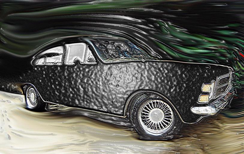 Keywords: opal car old car vehicle black special effect digital manipulation old vehicle