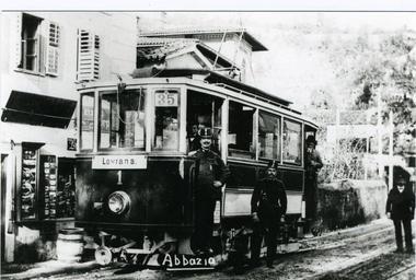| Keywords: Opatija tram (1).jpg Opatija on their way to Lovran Croatia Opatiji de Straßenbahn in Opatija auf dem Weg nach Lovran Kroatien Rijeka City Museum Muzej grada Rijeke before 1933 author old foto in public domain Permission granted by Rijeka City Museum PD-old Trams in Opatija |