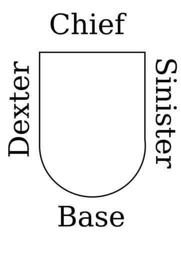 Keywords: Opdeling1.svg en Heraldic terminology Dexter left portion of shield; Sinister right portion of shield; Chief upper area of sheild; Base lower area of shield Skjoldets opdelingsbenævnelser own User Rama Heraldic shields Illustrations of heraldic terms SVG diagrams in English Spanish heraldic shields |