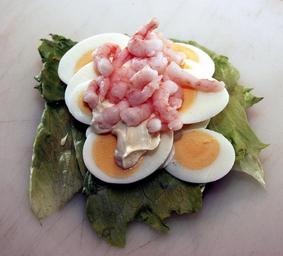 Keywords: open-faced sandwiches open sandwich salad rye bread food dining production taste cooking lunch danish specialty butter mayonnaise eggs prawns