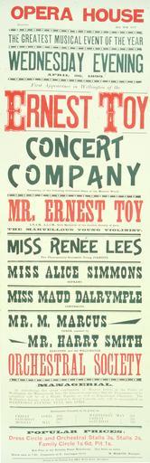 Keywords: text Arrangement of varied text styles, Victorian and Art Nouveau. Quantity: 1 colour photo-mechanical print(s). Physical Description: Letterpress 895 x 290 mm. Evening Post (Wellington, N.Z.). Opera House [Wellington] :Ernest Toy Concert Company ... Wednesday evening, April 26, 1899. Printed at the Evening Post Office, Willis Street, Wellington [1899]. Ref: Eph-E-MUSIC-1899-01. Alexander Turnbull Library, Wellington, New Zealand. natlib.govt.nz/records/22856724 Arrangement of varied text styles, Victorian and Art Nouveau. Quantity: 1 colour photo-mechanical print(s). Physical Description: Letterpress 895 x 290 mm. Evening Post (Wellington, N.Z.). Opera House [Wellington] :Ernest Toy Concert Company ... Wednesday evening, April 26, 1899. Printed at the Evening Post Office, Willis Street, Wellington [1899]. Ref: Eph-E-MUSIC-1899-01. Alexander Turnbull Library, Wellington, New Zealand. natlib.govt.nz/records/22856724 |
