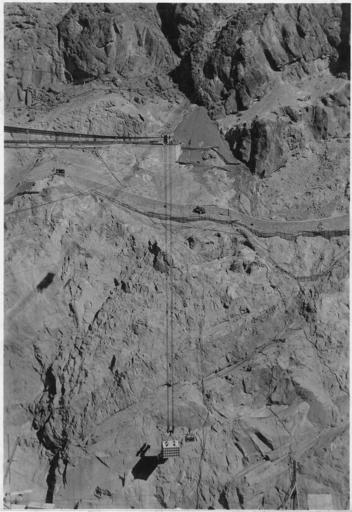 | Keywords: "Operating test on 150-ton cableway. This view shows the 150-ton weight being lowered to the Arizona penstock... - NARA - 293861.jpg Scope and content Photograph from Volume Two of a series of photo albums documenting the construction of Hoover Dam Boulder City Nevada General notes 293861 Local identifier Department of the Interior Bureau of Reclamation Engineering and Research Center 05/18/1981 - 03/04/1988 NARA's Rocky Mountain Region Denver NRGA Building 48 Denver Federal Center West 6th Avenue and Kipling Street Denver CO 80225-0307 1933-05-22 Record group Record Group 115 Records of the Bureau of Reclamation 1889 - 2008 Record group ARC 444 Photograph albums compiled 1903 - 1972 Series ARC 293611 File unit File unit ARC Variant control numbers NAIL Control Number NRG-115-CONSTPHO85006-BC21712 Other versions <gallery> File Operating_test_on_150-ton_cableway _This_view_shows_the_150-ton_weight_being_lowered_to_the_Arizona_penstock _-_NARA_-_293861 tif tif File Operating_test_on_150-ton_cableway _This_view_shows_the_150-ton_weight_being_lowered_to_the_Arizona_penstock _-_NARA_-_293861 jpg jpg </gallery> NARA-cooperation PD-USGov Six Companies Inc cableways at Hoover Dam construction site |