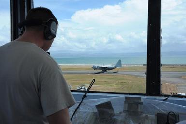 Keywords: Operation Damayan 131121-N-OV358-110.jpg en U S Air Force Master Sgt Clinton Dykes of the 36th Contingency Response Group monitors the day's flight schedule as a Swedish C-130 takes off Joint Task Force 505 personnel are conducting search and rescue supply drops and evacuation missions in support of Operation Damayan U S Navy photo by Mass Communication Specialist 1st Class Peter D Blair/Released 2013-11-21 Petty Officer 1st Class Peter D Blair https //www dvidshub net/image/1058125 131121-N-OV358-110 2013-11-21 22 32 TACLOBAN LEYTE PH PD-USGov-Military-Navy Tacloban Operation Damayan Images from DoD uploaded by Fæ