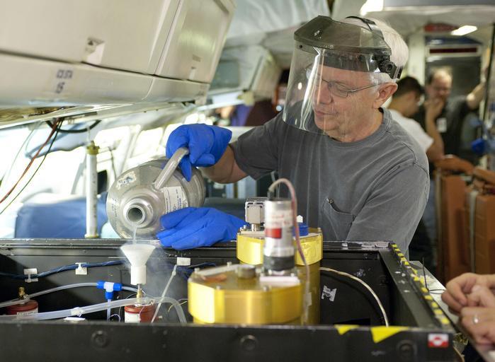| Keywords: Operation Ice Bridge 2009 DVIDS831543.jpg  en ED09-0284-23 NASA Langley Research Center researcher Glen Sachse pours liquid nitrogen in a dewar used to keep the infrared detectors of the Differential Absorption CO Measurement instrument cold Developed at NASA Langley the instrument is installed on NASA's DC-8 airborne laboratory and will be used to measure carbon monoxide methane and nitrous oxide concentrations during the Operation Ice Bridge mission to Antarctica September 29 2009 NASA Photo / Tom Tschida NASA Identifier 392885main_ED09-0284-23_full_full 2009-12-01 Glenn Research Center https //www dvidshub net/image/831543 831543 2013-02-08 01 58 WASHINGTON D C US PD-USGov Langley Research Center Images from DoD uploaded by Fæ |
