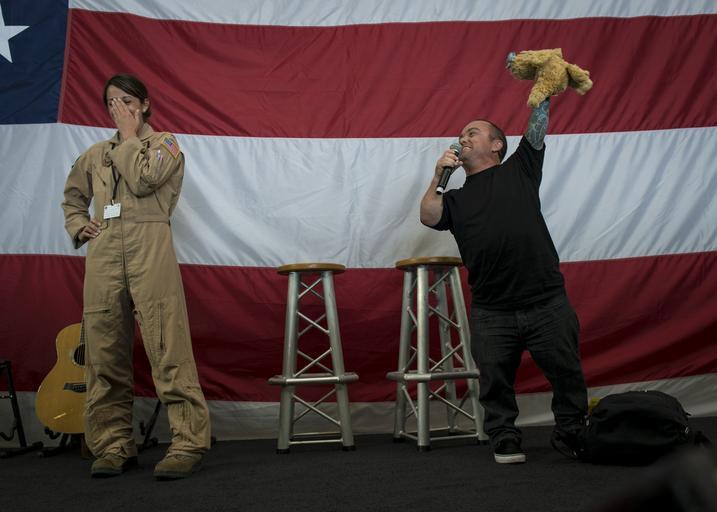 | Keywords: Operation Inherent Resolve 150305-N-WD464-085.jpg en 150305-N-WD464-085 ARABIAN GULF Television host and actor Jason Wee Man Acuna jokes with Air Force 1st Lieutenant Amanda Robillard during a United Service Organization show aboard aircraft carrier USS Carl Vinson Carl Vinson is currently deployed to the area supporting maritime security operations strike operations in Iraq and Syria as directed and theater security cooperation efforts in the 5th Fleet area of operations U S Navy photo by Mass Communication Specialist 2nd Class Alex King/Released 2015-03-05 MAR 5 2015 https //www dvidshub net/image/1801673 150305-N-WD464-085 2015-03-06 19 47 USS CARL VINSON CVN 70 ARABIAN GULF AT SEA PD-USGov-Military-Navy USS Carl Vinson CVN-70 Images from DoD uploaded by Fæ |