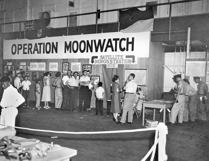| Keywords: smithsonian institution smithsonianinstitution smithsonian institution archives smithsonianinstitutionarchives blackandwhite monochrome black and white Photographer: Unknown Date: c. 1958 Type: Photographic print Standard number: 91-6389 Summary: Under a banner for Operation Moonwatch, people are lined up at the entrance to a Satellite Demonstration set up in Biloxi, Mississippi. The Moonwatch Division of the Smithsonian Astrophysical Observatory was created in 1956 as part of the Satellite Tracking Program and established to track and photograph the artificial earth satellites to be launched during the International Geophysical Year, 1957-1958 Persistent URL: siarchives.si.edu/collections/siris_sic_11597 Repository:Smithsonian Archives - History Div View more collections from the Smithsonian Institution. Photographer: Unknown Date: c. 1958 Type: Photographic print Standard number: 91-6389 Summary: Under a banner for Operation Moonwatch, people are lined up at the entrance to a Satellite Demonstration set up in Biloxi, Mississippi. The Moonwatch Division of the Smithsonian Astrophysical Observatory was created in 1956 as part of the Satellite Tracking Program and established to track and photograph the artificial earth satellites to be launched during the International Geophysical Year, 1957-1958 Persistent URL: siarchives.si.edu/collections/siris_sic_11597 Repository:Smithsonian Archives - History Div View more collections from the Smithsonian Institution. |