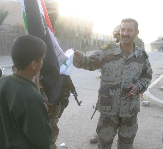 Keywords: Operation Steel Curtain DVIDS12240.jpg en HUSAYBAH Iraq- Major Mohlamd with the Iraqi Army speaks with a boy at the displaced persons compound during Operation Steel Curtain The objectives of Operation Al Hajip Elfulathi Steel Curtain are to restore Iraqi sovereign control along the Iraqi-Syrian border and destroy the Al Qaeda in Iraq terrorist network operating throughout Al Qa'im region Official U S Marine Corps photo by Cpl Michael R McMaugh 1st Marine Division Combat Camera 2005-11-06 https //www dvidshub net/image/12240 12240 2005-11-10 16 36 HUSAYBAH IQ PD-USGov 1st Marine Division United States Images from DoD uploaded by Fæ |