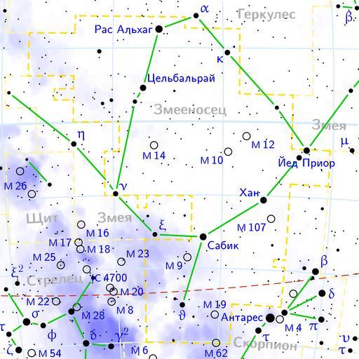 | Keywords: Ophiuchus constellation map ru lite.png en Ophiuchus constellation map on Russian ru Ка та созвездия Змееносца на усском языке It was created using the program PP3 At http //pp3 sourceforge net PP3's homepage you also get the input scripts necessary for re-compiling the map The yellow dashed lines are constellation boundaries the red dashed line is the ecliptic and the shades of blue show Milky Way areas of different brightness The map contains all Messier objects except for colliding ones The underlying database contains all stars brighter than 6 5 All coordinates refer to equinox 2000 0 The map is calculated with the equidistant azimuthal projection the zenith being in the center of the image The north pole is to the top The horizontal lines of equal declination are drawn for 0° +10° +20° etc The lines of equal rectascension are drawn for all 24 hours Towards the rim there is a very slight magnification and distortion Own 2006-10-17 Denis Ibaev Constellations maps russian Ophiuchus |
