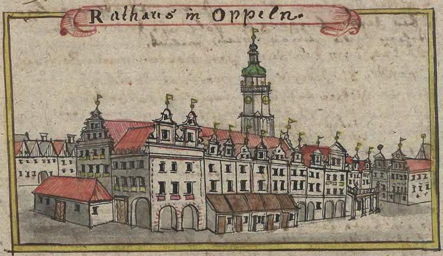 | Keywords: Oppeln Rathaus Werner.JPG de Das Rathaus in Oppeln mit angebauten Ringhäusern im 18 Jahrhundert Zeichnung nach Friedrich Bernhard Werner Silesia in Compendio seu Topographia das ist Praesentatio und Beschreibung des Herzogthums Schlesiens Pars I http //www bibliotekacyfrowa pl/dlibra/docmetadata id 15414 Link Creator Friedrich Bernhard Werner 18th cent PD-old-100 Historical images of Town hall in Opole Friedrich Bernhard Werner | ||||