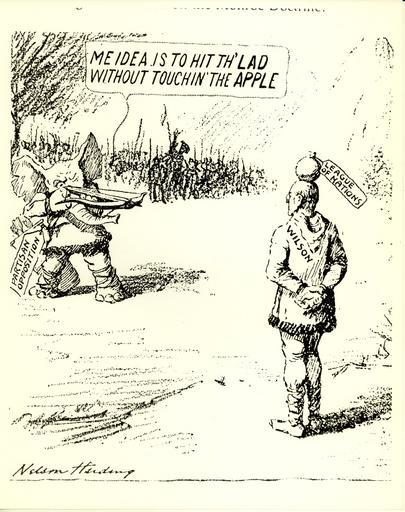 Keywords: newspaper article cartoon political president wilson sketch drawing monochrome Local Accession Number: 2069 Description: This cartoon depicts the partisan fight between Republicans and Wilson-led Democrats over the League of Nations. Photographer: N/A Source: Nelson Harding Size: 8x10 Medium: Black and White Date: c. 1920 Local Accession Number: 2069 Description: This cartoon depicts the partisan fight between Republicans and Wilson-led Democrats over the League of Nations. Photographer: N/A Source: Nelson Harding Size: 8x10 Medium: Black and White Date: c. 1920 |
