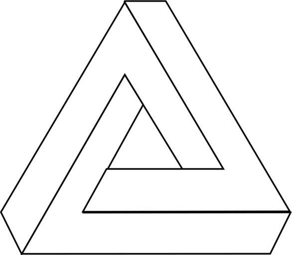 Keywords: optical illusion triangle puzzle shape geometric geometry 3d illusion imagination unreal impossible