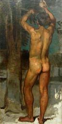 Keywords: Orangenpflücker (1873) - Teilstudie zum Fresko der Südwand.JPG Artwork Creator Hans von Marées Fresko an der Südwand der Bibliothek im Aquarium der Stazione Zoologica in Neapel Die Figur des Orangenpflückers ist ein Hauptmotiv der Fresken in Neapel und von starkem Symbolgehalt Zugleich zeigt die Figur eine neue Figurenauffassung die vom Studium der Antike zeugt und die fortan Marées' Werk bestimmen wird 1873 oil canvas cm 198 98 Alte Nationalgalerie 02531644 object history Zugang Geschenk 1907 Vorbesitzer München Florenz private Sammlung credit line accession number A I 1024 own James Steakley 2009-01-07 thumb left 200px Hans von Marées 1837-1887 L'aranceto detail Fresco Naples Aquarium Library room 1873 PD-old-100 DEFAULTSORT Marees Hans von; Studie zum Fresko Acquarium of Naples Orangenpflücker 1873; Alte Nationalgalerie Preparatory paintings for the frescos in the Aquarium of Naples Hans von Marées Paintings in the Alte Nationalgalerie Paintings of nude standing males