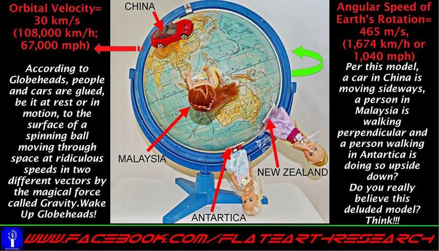 | Keywords: orbital velocity nasa news flatearth flat earth space hoax sun moon yin yang yinyang god reality plane universe curve curvature nocurve bible truth dome According to globeheads, people and cars are glued, be it at rest or in motion, to the surface of a spinning ball moving through space at ridiculous speeds in two different vectors by the magical force called gravity. Wake up globeheads! Per this model, China is moving sideways, a person in Malaysia is walking perpendicular and a person walking in Antarcticais doing so upside down? Do you really believe this deluded model? Think! FlatEarth meme collected by A.J. Wilson of iPressThis at FlatEarth.Online, made by others. Credit to fb.com/flatearthresearch According to globeheads, people and cars are glued, be it at rest or in motion, to the surface of a spinning ball moving through space at ridiculous speeds in two different vectors by the magical force called gravity. Wake up globeheads! Per this model, China is moving sideways, a person in Malaysia is walking perpendicular and a person walking in Antarcticais doing so upside down? Do you really believe this deluded model? Think! FlatEarth meme collected by A.J. Wilson of iPressThis at FlatEarth.Online, made by others. Credit to fb.com/flatearthresearch |
