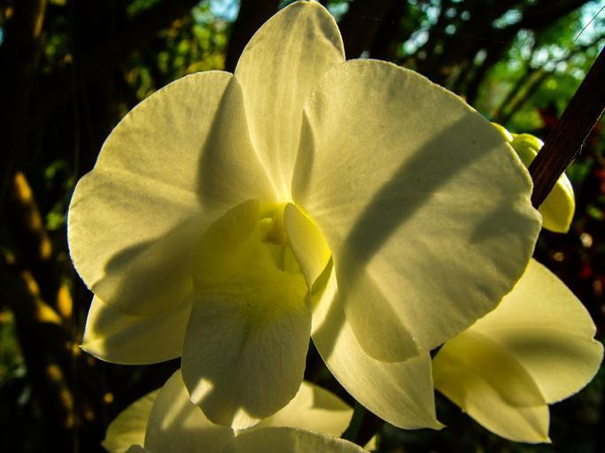 Keywords: orchid blossom bloom flower white back light close