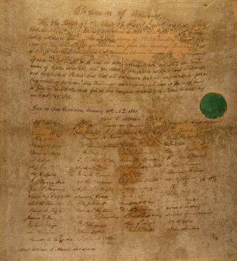 | Keywords: Ordinance of Secession, 1861 WDL3939.png Artwork ru а одное соб ание штата Фло ида 1860-1861 fr Convention du peuple de Floride 1860-1861 en Florida Convention of the People 1860-1861 zh 佛罗里达州人民会议 1860-1861 pt Convenção do Povo da Flórida 1860-1861 ar مؤتمر الشعب في فلوريدا 1860-1861 es Convención de las personas de Florida 1860-1861 ru Постановление о выходе из Союза 1861 г fr Ordonnance de Sécession 1861 en Ordinance of Secession 1861 zh 分离法令,1861 年 pt Portaria de Secessão 1861 ar مرسوم الانفصال، 1861 ru Данный документ является одност аничной выполненной от уки копией Постановления о выходе из Союза п инятого 10 янва я 1861 года членами а одного соб ания штата Фло ида кото ое получило название Соб ание по воп осу выхода из Союза Согласно акту законодательного о гана штата Фло ида п инятому 30 нояб я 1860 года губе нато эдисон С Пе и издал указ о п оведении в субботу 22 декаб я 1860 года выбо ов делегатов соб ания целью кото ого было ассмот ение воп оса о п аве штата Фло ида на выход из Союза Делегаты соб ания по воп осу выхода из Союза вст етились в Таллахасси 3 янва я 1861 года и 10 янва я было п инято Постановление о выходе из Союза Постановление п овозглашало штат Фло ида суве енной и независимой нацией 13 ап еля соб ание атифици овало конституцию п инятую Конфеде ативными штатами Аме ики Соб ание было зак ыто 27 ап еля 1861 года <br>Конфеде ативные штаты Аме ики; Политика и уп авление; Выход из Союза; Соединенные Штаты Аме ики Исто ия Г ажданская война 1861 1865 гг fr Ce document est une copie manuscrite d'une page de l'ordonnance de sécession adoptée le 10 janvier 1861 par les membres de la Convention du peuple de Floride communément appelée la Convention de Sécession Conformément à une loi de la législature de la Floride approuvée le 30 novembre 1860 le gouverneur Madison S Perry a émis une proclamation appelant à une élection le samedi 22 décembre 1860 pour que les délégués lors d'une convention règlent la question de savoir si la Floride avait le droit de se retirer de l'Union La Convention de sécession s'est réunie à Tallahassee le 3 janvier 1861 et a adopté le 10 janvier l'ordonnance de sécession L'ordonnance déclarait que la Floride était une nation souveraine et indépendante Le 13 avril la Convention a ratifié la Constitution adoptée par les États confédérés d'Amérique La convention fut levée le 27 avril 1861 <br>États confédérés d'Amérique; Politique et gouvernement; Sécession; Histoire des États-Unis - Guerre de Sécession 1861-1865 en This document is a one-page handwritten copy of the Ordinance of Secession passed on January 10 1861 by the members of the Florida Convention of the People commonly referred to as the Secession Convention Pursuant to an act of the Florida legislature approved on November 30 1860 Governor Madison S Perry issued a proclamation calling an election on Saturday December 22 1860 for delegates to a convention to address the issue of whether Florida had a right to withdraw from the Union The Secession Convention met in Tallahassee on January 3 1861 and passed on January 10 the Ordinance of Secession The ordinance declared Florida to be a sovereign and independent nation On April 13 the convention ratified the constitution adopted by the Confederate States of America The convention adjourned on April 27 1861 <br>Confederate States of America; Politics and government; Secession; United States--History--Civil War 1861-1865 zh 这份文件是 分离法令 的手写 ,仅 页 该法令于 1861 年 1 10 日由佛罗里达州人民会议( 常称为 分离会议 )的成员 过 根据于 1860 年 11 30 日获得批准的佛罗里达州立法 构的 个法案,州长麦迪 ·S ·佩里发布公告,号召于 1860 年 12 22 日举行 举,让与会代表讨论佛罗里达州是否 出联邦的问题 分离会议于 1861 年 1 3 日 塔拉哈西举行,并于 1 10 日 过了 分离法令 该法令宣布佛罗里达州是 个 拥 主 的独立国家 4 13 日,会议批准了美利 联盟国采纳的宪法 此次会议于 1861 年 4 27 日休会 <br>美利 联盟国; 政治与政 ; 分离; 美国-历史-南北战争,1861-1865 年 pt Este documento é uma cópia manuscrita de uma página da Portaria de Secessão aprovada em 10 de janeiro de 1861 pelos membros da Convenção do Povo da Flórida comumente chamada de Convenção de Secessão Em conformidade com uma lei da legislatura da Flórida aprovada em 30 de novembro de 1860 o governador Madison S Perry emitiu uma proclamação convocando uma eleição no sábado 22 de dezembro de 1860 para que os delegados de uma convenção discutissem a questão da Flórida ter ou não o direito de se retirar da União A Convenção de Secessão reuniu-se em Tallahassee em 3 de janeiro de 1861 e aprovou em 10 de janeiro a Portaria de Secessão A portaria declarou ser a Flórida uma nação soberana e independente Em 13 de abril a convenção ratificou a constituição adotada pelos Estados Confederados da América A convenção foi encererada em 27 de abril de 1861 <br>Estados Confederados da América; Política e governo; Sec