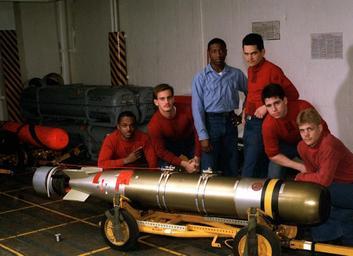 Keywords: Ordnancemen with Mk 46 torpedo on CVN-69 1988.JPEG U S Navy ordnancemen pose with a Mark 46 torpedo on an Aero 21A weapons skid aboard the nuclear-powered aircraft carrier USS Dwight D Eisenhower CVN-69 on 1 April 1988 http //www defenseimagery mil U S DefenseImagery photo VIRIN http //www dodmedia osd mil/DVIC_View/Still_Details cfm SDAN DNSC9004258 JPGPath /Assets/1986/Navy/DN-SC-90-04258 JPG DN-SC-90-04258 1988-04-01 PH2 Tracy Lee Didas USN PD-USGov-Military-Navy Mark 46 torpedo Aboard USS Dwight D Eisenhower CVN-69 |