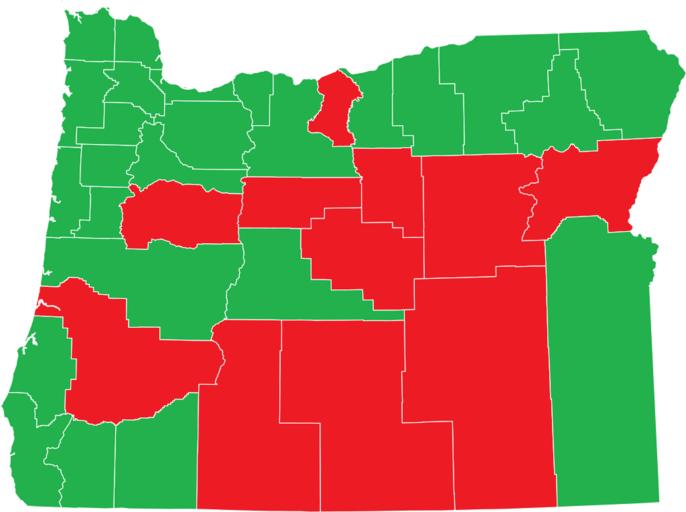 Keywords: Oregon 2012 Measure 85.svg Oregon Ballot Measure 85 Green indicates yes and red indicates no own MB298 2016-04-06 SVG maps of Oregon by MB298 Ballot measure maps of Oregon
