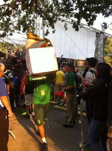 | Keywords: Oregon Ducks head after College GameDay.jpg en Oregon Ducks mascot head worn by Lee Corso after College GameDay broadcast on Sept 6 2014 own MB298 2014-09-06 The Oregon Duck September 2014 in Oregon 2014 in Eugene Oregon Lee Corso College GameDay football |