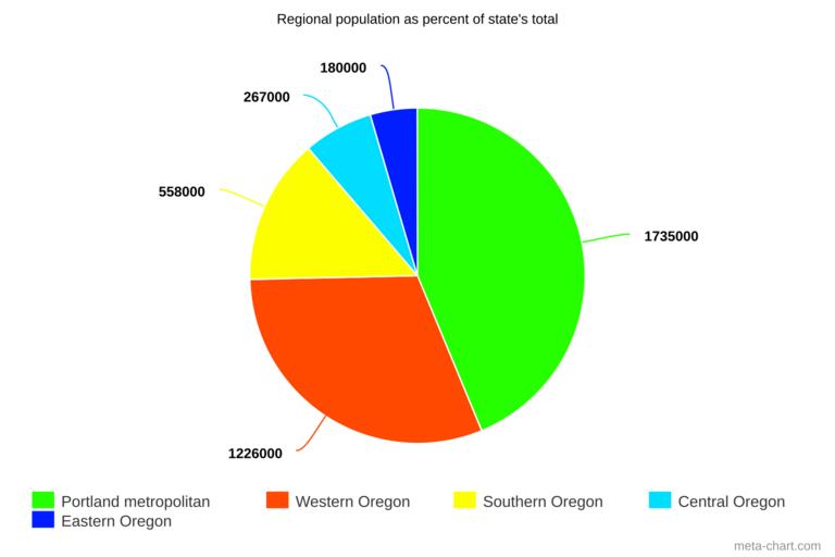 | Keywords: Oregon population by region.svg en Regional population as a percent of state's total Using a very broad definition of regions Portland metropolitan Washington Multnomah + Clackamas counties Western Oregon Columbia Clatsop Tillamook Lincoln Yamhill Polk Marion Benton Linn + Lane Southern Oregon Douglas Coos Curry Josephine Jackson Klamath + Lake Central Oregon Hood River Wasco Sherman Gilliam Wheeler Crook Jefferson + Deschutes Eastern Oregon Morrow Umatilla Union Wallowa Grant Baker Harney + Malheur Percents Portland metropolitan 43 7 Western Oregon 30 9 Southern Oregon 14 1 Central Oregon 6 7 Eastern Oregon 4 5 own MB298 2016-01-30 Statistical charts Demographics of Oregon Regions of Oregon |