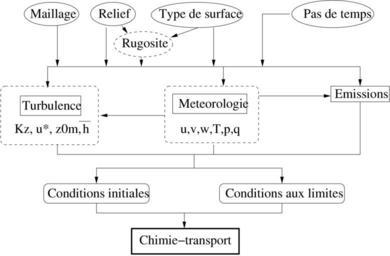 Keywords: Organigrame-modele-chimie-transport.png en Flowchart of chemistry-transport modeling fr Organigramme du principe general d'un modele de chimie-transport own Lmenut 2010-10 Scientific modeling examples Physical chemistry