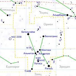 | Keywords: Orion constellation map ru lite.png en Orion constellation map on Russian ru Ка та созвездия О иона на усском языке It was created using the program PP3 At http //pp3 sourceforge net PP3's homepage you also get the input scripts necessary for re-compiling the map The yellow dashed lines are constellation boundaries the red dashed line is the ecliptic and the shades of blue show Milky Way areas of different brightness The map contains all Messier objects except for colliding ones The underlying database contains all stars brighter than 6 5 All coordinates refer to equinox 2000 0 The map is calculated with the equidistant azimuthal projection the zenith being in the center of the image The north pole is to the top The horizontal lines of equal declination are drawn for 0° +10° +20° etc The lines of equal rectascension are drawn for all 24 hours Towards the rim there is a very slight magnification and distortion Own 2006-11-17 Denis Ibaev Constellations maps russian |