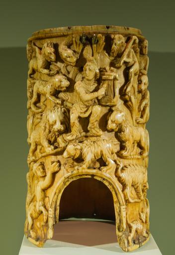 MAKE A MEME View Large Image Orpheus enchanting the animals Colosseo Rome Italy.jpg en Cylindrical container with Orpheus enchanting the animals relief ivory and silver temporary exhibition in the Colosseo Rome Italy late 4th - early 6th century CE from Florence Museo ...