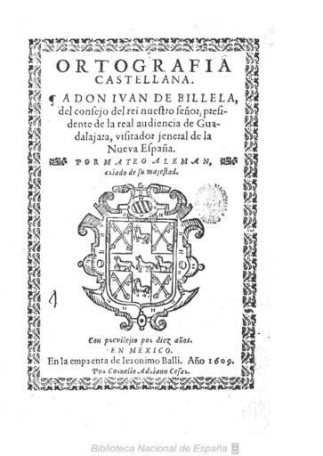 Keywords: Ortografia castellana Aleman 1609.jpg es Ortografia Castellana Texto impreso / por Mateo Aleman - En Mexico en la imprenta de Ieronimo Balli por Cornelio Adriano Cesar 1609 - 7 83 h 1 h de grab ; 4º Signatura R/5060 1609 http //bdh bne es/bnesearch/detalle/bdh0000054270 - Biblioteca Digital Hispánica Biblioteca Nacional de España Alemán Mateo 1547-1615 other versions BNE PD-old-100 Uploaded with UploadWizard Spanish language |