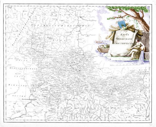 | Keywords: Oryol Namestnichestvo (1792).jpg Ка та О ловского наместничества лист 25 из «Российского атласа из со ока четы ех ка т состоящего и на со ок на два наместничества Импе ию азделяющего» 1792 С цветным ка тушем en Map of Oryol Namestnichestvo sheet 25 from official Atlas of the Russian Empire 1792 With colour cartouche Российский атлас из со ока четы ех ка т состоящий и на со ок два наместничества импе ию азделяющий / Сочин г ави и печатан п и Го ном училище в 1792 г Соч А Вильдб ехт Г ави А Савинков И Леонов Вы ез Т ихайлов http //rutracker org/forum/viewtopic php t 446903 1792 Александ ихайлович Вильб ехт en Aleksandr Mikhaylovich Vilbrekht File Or 1792 jpg en Map with black white cartouche Ка та с чё но-белым ка тушем PD-old-100 Atlas of Russian Empire 1792 year Maps uploaded by Andrew Butko from various sources Old maps of Oryol Governorate |