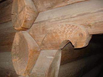 Keywords: Oseloftet ørnehode.jpg en Ornamental woodcarving in the shape of en eagle's head on a projecting log in the wall of the loft from Ose at Norsk Folkemuseum no Utskåret ørnehode på framskytende stokk i svalen på nordvestre hjørne av Oseloftet fra Setesdal nå på Norsk Folkemuseum own Roede 2011-04-20 Cc-zero Carpentry Oseloftet Wood carved building ornaments in Norway Eagle heads in art April 2011 in Oslo |