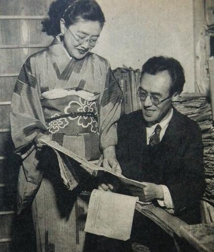 Keywords: Oshima Shoji and his wife.JPG ja 大島正二・英子夫妻(クイズ 家) 1953-05-20 アサヒグラフ 1953年5 20日号 日新聞社 Custom license marker 2014 09 17 PD-Japan-oldphoto Uploaded with UploadWizard People of Japan in 1953 Husbands and wives Writers from Japan