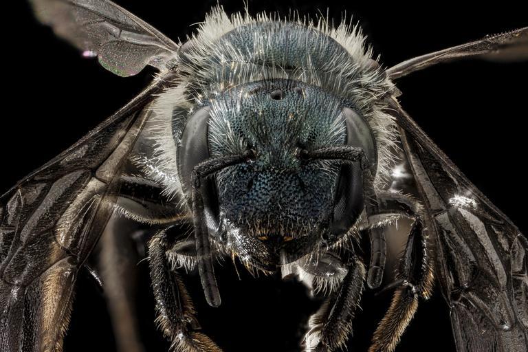 Keywords: bug bugs bee bees pollinator pollinators animal animals animalia arthropod arthropods arthropoda insect insects insecta hymenoptera aculeata anthophila apoidea megachilidae megachilinae osmiini mason bee masonbee mason bees masonbees osmia osmia simillima osmiasimillima taxonomy:binomial=osmia simillima taxonomy:binomial=osmiasimillima adirondack adirondacks adirondack mountains adirondackmountains droege biml usgsbiml usgs zerene stacker zerenestacker stackshot blue-black blueblack black background outdoor texture A somewhat big and somewhat northern Osmia. One of the frustrating things about bees is that entire groups look about the same, such is Osmia. In this case we see things like an expanded front basitarsis with long sigmoid hairs and several other small differences that add up to this species, these puzzles can be fun or frustrating, but it takes time to learn to play the game. .... Really though, it is a lot of fun, and important work, you should get a microscope and try it, citizen, better than looking at television all night. Specimen captured in the Adirondack Mountains of New York. Stack shot by Dejen Mengis. On the face shot note the confusion in the stacking process around the antennae...this can be taken care of in zerene stacker, but we didn't bother because we mostly are in production mode. ~~~~~~~~~~{{{{{{0}}}}}}~~~~~~~~~~ All photographs are public domain, feel free to download and use as you wish. Photography Information: Canon Mark II 5D, Zerene Stacker, Stackshot Sled, 65mm Canon MP-E 1-5X macro lens, Twin Macro Flash in Styrofoam Cooler, F5.0, ISO 100, Shutter Speed 200 I taste a liquor never brewed, From tankards scooped in pearl; Not all the vats upon the Rhine Yield such an alcohol! Inebriate of air am I, And debauchee of dew, Reeling, through endless summer days, From inns of molten blue. When landlords turn the drunken bee Out of the foxglove's door, When butterflies renounce their drams, I shall but drink the more! Till seraphs swing their snowy hats, And saints to windows run, To see the little tippler Leaning against the sun! - Emily Dickinson Want some Useful Links to the Techniques We Use? Well now here you go Citizen: Basic USGSBIML set up: www.youtube.com/watch?v=S-_yvIsucOY USGSBIML Photoshopping Technique: Note that we now have added using the burn tool at 50% opacity set to shadows to clean up the halos that bleed into the black background from "hot" color sections of the picture. www.youtube.com/watch?v=Bdmx_8zqvN4 PDF of Basic USGSBIML Photography Set Up: ftp://ftpext.usgs.gov/pub/er/md/laurel/Droege/How%20to%20Take%20MacroPhotographs%20of%20Insects%20BIML%20Lab2.pdf Google Hangout Demonstration of Techniques: plus.google.com/events/c5569losvskrv2nu606ltof8odo or www.youtube.com/watch?v=4c15neFttoU Excellent Technical Form on Stacking: www.photomacrography.net/ Contact information: Sam Droege sdroege@usgs.gov 301 497 5840 A somewhat big and somewhat northern Osmia. One of the frustrating things about bees is that entire groups look about the same, such is Osmia. In this case we see things like an expanded front basitarsis with long sigmoid hairs and several other small differences that add up to this species, these puzzles can be fun or frustrating, but it takes time to learn to play the game. .... Really though, it is a lot of fun, and important work, you should get a microscope and try it, citizen, better than looking at television all night. Specimen captured in the Adirondack Mountains of New York. Stack shot by Dejen Mengis. On the face shot note the confusion in the stacking process around the antennae...this can be taken care of in zerene stacker, but we didn't bother because we mostly are in production mode. ~~~~~~~~~~{{{{{{0}}}}}}~~~~~~~~~~ All photographs are public domain, feel free to download and use as you wish. Photography Information: Canon Mark II 5D, Zerene Stacker, Stackshot Sled, 65mm Canon MP-E 1-5X macro lens, Twin Macro Flash in Styrofoam Cooler, F5.0, ISO 100, Shutter Speed 200 I taste a liquor never brewed, From tankards scooped in pearl; Not all the vats upon the Rhine Yield such an alcohol! Inebriate of air am I, And debauchee of dew, Reeling, through endless summer days, From inns of molten blue. When landlords turn the drunken bee Out of the foxglove's door, When butterflies renounce their drams, I shall but drink the more! Till seraphs swing their snowy hats, And saints to windows run, To see the little tippler Leaning against the sun! - Emily Dickinson Want some Useful Links to the Techniques We Use? Well now here you go Citizen: Basic USGSBIML set up: www.youtube.com/watch?v=S-_yvIsucOY USGSBIML Photoshopping Technique: Note that we now have added using the burn tool at 50% opacity set to shadows to clean up the halos that bleed into the black background from "hot" color sections of the picture. www.youtube.com/watch?v=Bdmx_8zqvN4 PDF of Basic USGSBIML Photography Set Up: ftp://ftpext.usgs.gov/pub/er/md/laurel/Droege/How%20to%20Take%20MacroPhotographs%20of%20Insects%20BIML%20Lab2.pdf Google Hangout Demonstration of Techniques: plus.google.com/events/c5569losvskrv2nu606ltof8odo or www.youtube.com/watch?v=4c15neFttoU Excellent Technical Form on Stacking: www.photomacrography.net/ Contact information: Sam Droege sdroege@usgs.gov 301 497 5840