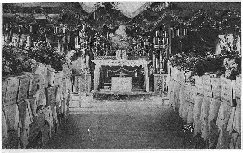 Keywords: Ossuaire provisoire.jpg fr Une vue de l'ossuaire provisoire à Douaumont Carte postale own Garitan ~1920 PD-old 1920 postcards of France Douaumont ossuary