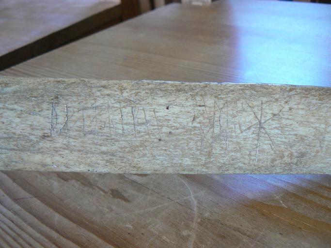 | Keywords: Ostergotland173AB.JPG en Ög 173 runic inscription from the 15th century in a dolphin's rib in Skärkind old church Östergötland Sweden There are a few more runes or runelike signs on the bone but this is the most important own Skvattram 2010-05-02 DEFAULTSORT Ög173 Östergötlands runinskrifter 173 2010 in Norrköping Municipality May 2010 in Sweden |