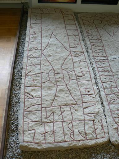 Keywords: OstergotlandFv1943;317A.JPG en Östergötlands runinskrifter Fv1943;317A Runic inscriptions of Östergötlands Fv1943;317A piece lid of a grave monument coffin of limestone from the 11th or 12th century Kept at Rådhuset in Skänninge Östergötland Sweden own Skvattram 2009-06-06 DEFAULTSORT ÖgFv1943;317A Runestones Östergötland Skänninge Archaeological monuments in Mjölby Municipality |
