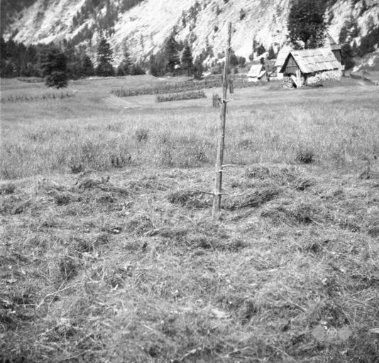 Keywords: Ostrgača (kou z roglji), okoli nje razloženo seno, Trenta 1952.jpg Ostrgača kou z roglji okoli nje razloženo seno Trenta susenje-pridelkov/f0000008089 1952-07 creator Boris Orel watermark PD-Slovenia 1952 in Slovenia Historical images of Trenta Haystacks in Slovenia Photographs by Boris Orel