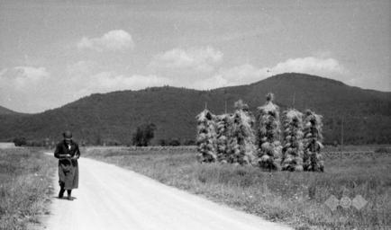 Keywords: Ostrnice z žitom pred Viševkom 1962.jpg Ostrnice z žitom pred Viševkom susenje-pridelkov/f0000019068 1962-08 creator Fanči Šarf watermark PD-Slovenia 1962 in Slovenia Viševek Hay drying poles in Slovenia Photographs by Fanči Šarf